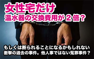 女性宅だけ温水器の交換費用が2倍?もしくは断られることになるかもしれない衝撃の過去の事件。他人事ではない冤罪事件?