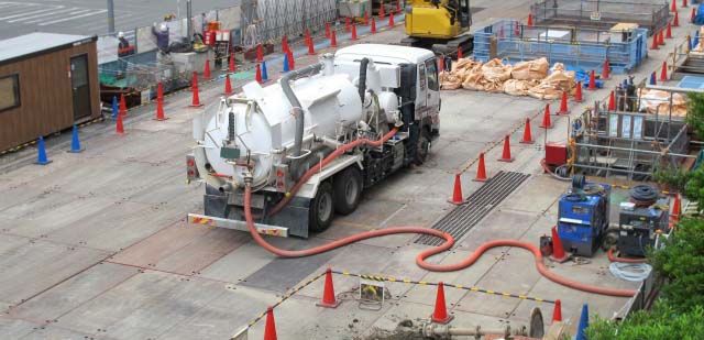 浄化槽内の汚泥を引き抜き清掃後に消毒を行います。